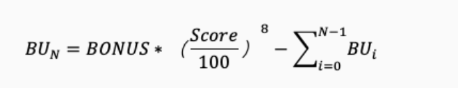 奖金额度获取评判指标说明:【BOUNS】表示奖金池总额度;【Score】表示模型得分;【BU_N】表示第n位达到奖金获取标准并更新排行榜后所获得的奖金总额度