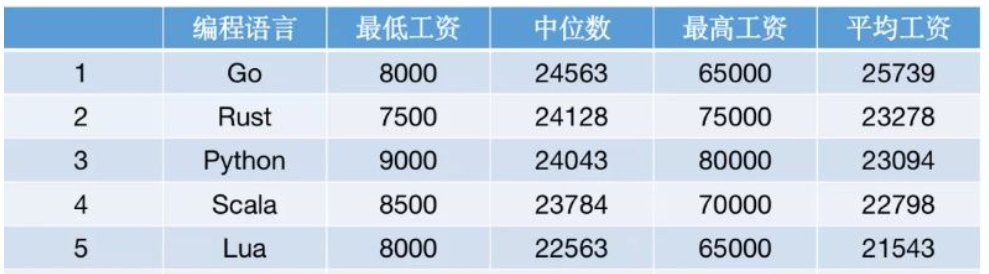 在最近的一份程序员薪资报告中,Go 的平均薪资位居榜首,平均薪资 25739。