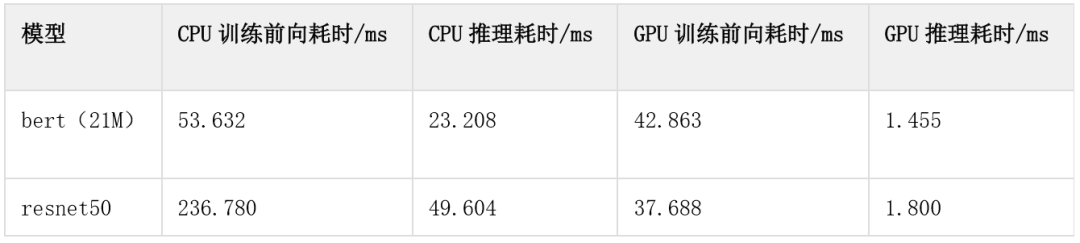【性能测一测】通过比较resnet50和bert模型的训练前向耗时和推理耗时,可以观测到Paddle Inference有显著的加速效果。