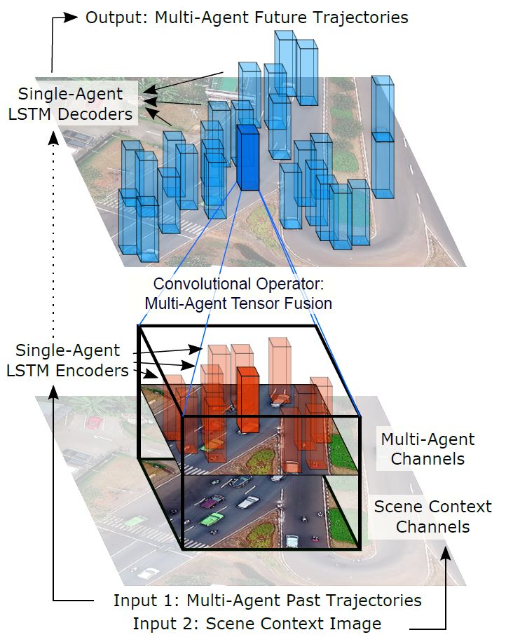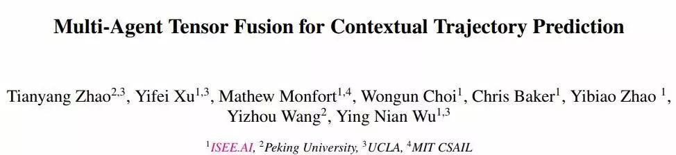 本文是计算机视觉领域国际顶级会议 CVPR 2019 入选论文《Multi Agent Tensor Fusion for Contextual Trajectory Prediction》的解读。该论文由 MIT 支持的自动驾驶初创公司 ISEE Inc,北京大学王亦洲老师课题组,UCLA,以及 MIT CSAIL 合作共同完成。该论文主要提出了一种基于深度学习的车辆和行人轨迹预测方法,提出了一个可以保持空间结构信息的多智能体张量融合网络,在机动车驾驶和行人轨迹数据集中对模型的性能进行了验证。