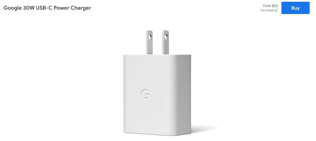 谷歌还十分环保地取消了包装随附的充电器,顺势推出 25 美元的新款 30W PD 充电器,国内到手价则要 200 多元——贵过苹果的 20W PD,几乎能买小米、vivo 等的 120W 充电套装了。