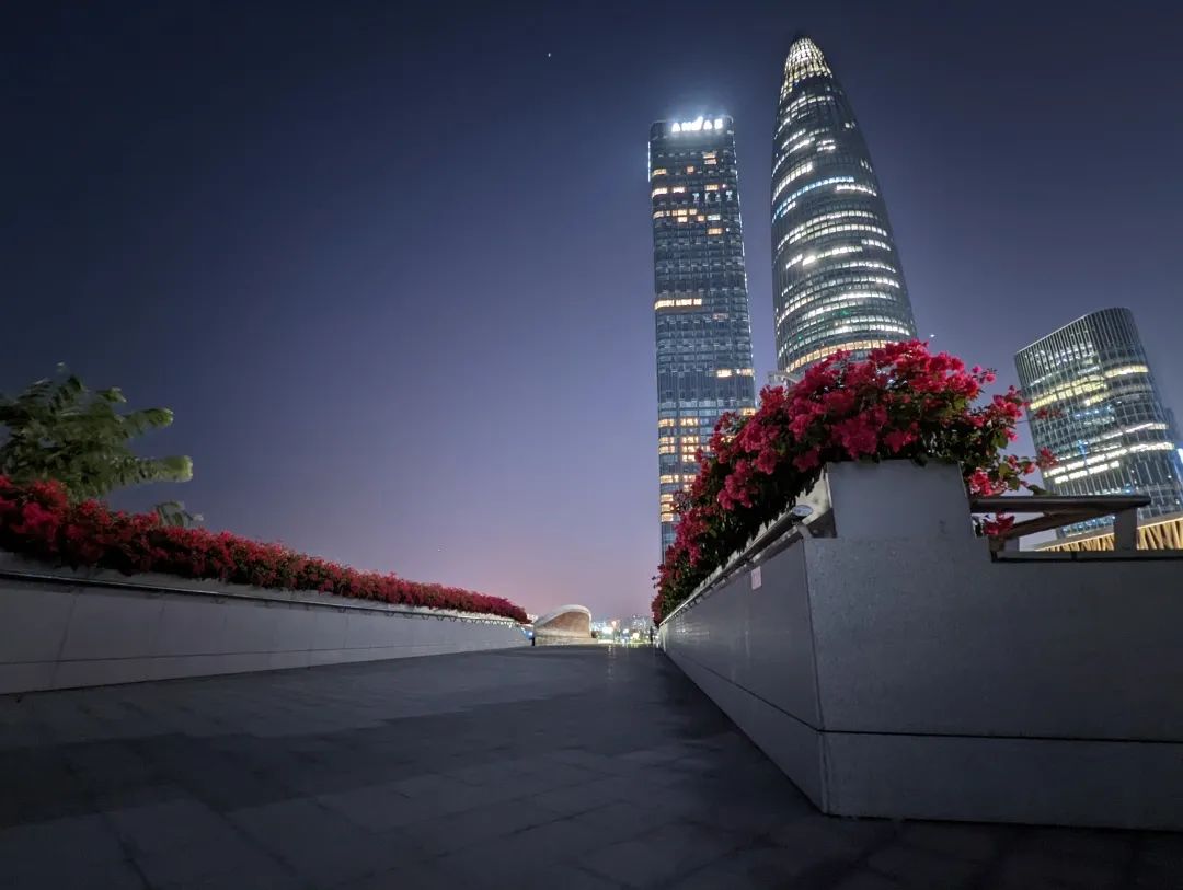 大底传感器加持下,Pixel 6 Pro 的夜拍更上一层楼,细节表现更佳,画面紫边抑制更出色。在环境光较弱的情况下,Pixel 6 Pro 会优先照顾画面亮度,此时画面的动态范围依然是比较出色的。