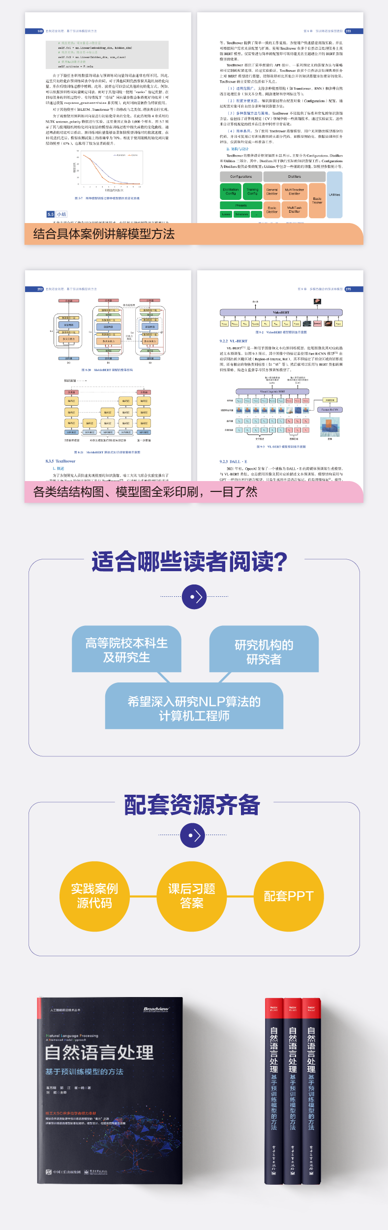 近些年来,以GPT、BERT为代表的预训练模型在自然语言处理领域掀起了一股浪潮,打开了“预训练+精调”的自然语言处理新范式的大门。由电子工业出版社博文视点出版的《自然语言处理:基于预训练模型的方法》一书,通过基础知识、预训练词向量以及预训练模型三大部分九个章节,详细介绍了预训练模型发展的来龙去脉,并通过示例代码进一步加深了读者对相关技术的理解与实践方式。