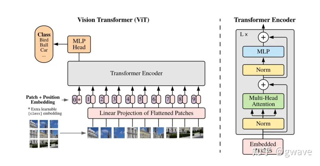 2020年Transformer在CV领域一炮打响,谷歌提出的Vision Transformer (ViT)[3] (An Image is Worth 16x16 Words,模仿“An Image is Worth a thousand Words”)再次横空出世,只是简单的将图片切成16X16的patch,扔到原封不动的NLP的Transformer中,结果竟然就一骑绝尘,表现超过了一众沉淀了多年的CNN,最神奇的是,完全不考虑图像的特点,把图像打成patch后就按NLP的Sequence的方法处理!
