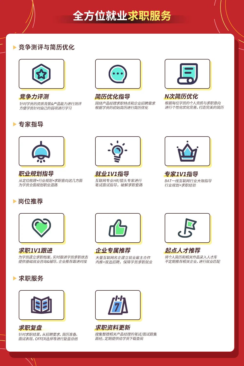 业内很多产品课程,听完课就“戛然而止”了,导致很多学员依旧不懂互联网公司对产品经理有何要求,如何针对性优化简历,如何寻找适合自己的岗位机会,如何在面试中充分展现自己的产品能力,如何进行合理的薪资谈判……