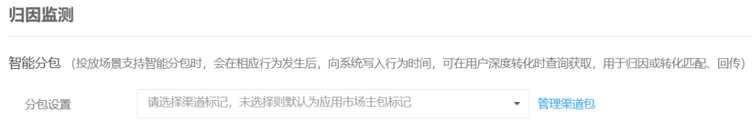 物理分包,比如APP广告主在不同的渠道投放带有不同标记的包体,当用户下载并打开该APP时,广告主通过读取封印在包体里的信息就能去识别到这个用户是从哪个渠道下载的了。不过这种方案比较麻烦,广告主需要去管理不同的安装包。而另一种智能分包就比较友好了,笔者了解到在华为应用市场上使用智能分包归因,广告主只需管理一个安装包,并在不同推广任务中绑定提前在投放平台创建好的虚拟分包渠道号,就能清楚得知每个用户都是来自于哪些不同条件的推广任务了。