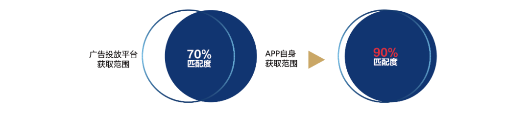 举个例子,某移动应用广告主在归因过程中发现广告平台下发的OAID与自己用户库里的匹配率很低,原因其一是第三方SDK未更新,因此自己未获取到最新机型的设备识别号;其二是广告投放平台和APP自身的OAID获取率都有限,想要进一步提升设备识别号的匹配率,最直接的办法是先提升自身设备识别号的获取率,因此该广告主在更新原有第三方SDK后又增加了另一厂商的SDK,获取率提升20%。