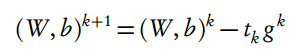当 |Ek | > 1 时,该算法被称为 batch SGD 或就是 SGD。一般而言,子集 E 是通过在 {1,...,T } 中循环选取的连续元素,Ek+1 = [Ek mod T ]+1。方向 gk 是使用一个链式规则(即反向传播)计算的,提供了 ∇f (W k· , b k ) 的一个无偏置的估计量。具体来说,我们有:
