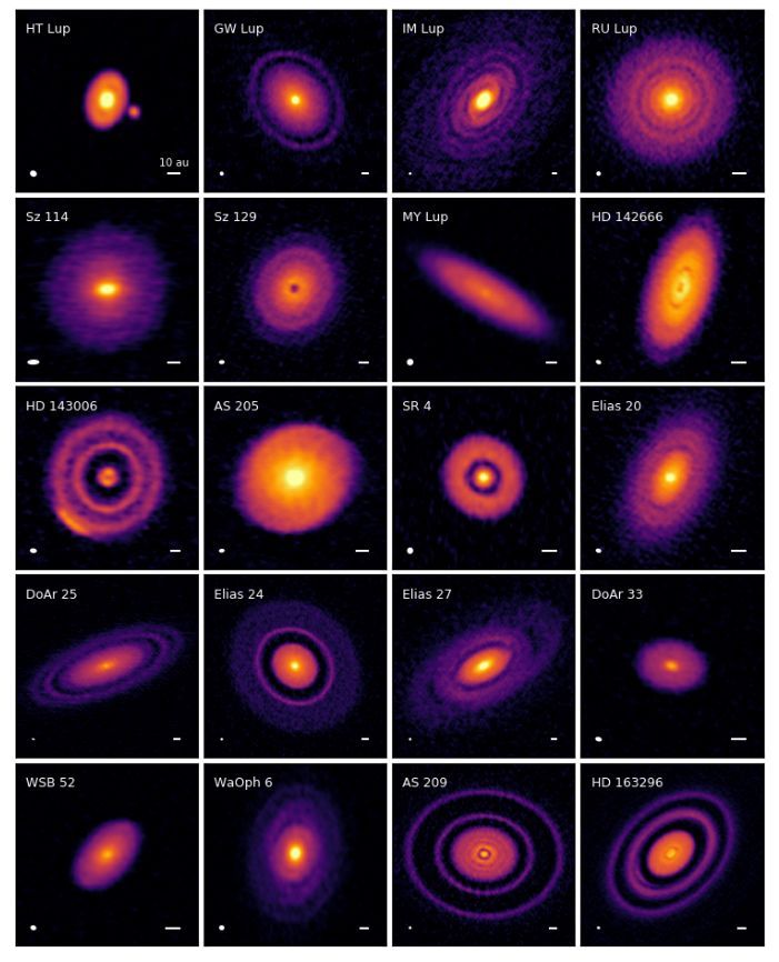 图2.ALMA观测到的20个原行星盘的240 GHz尘埃连续谱