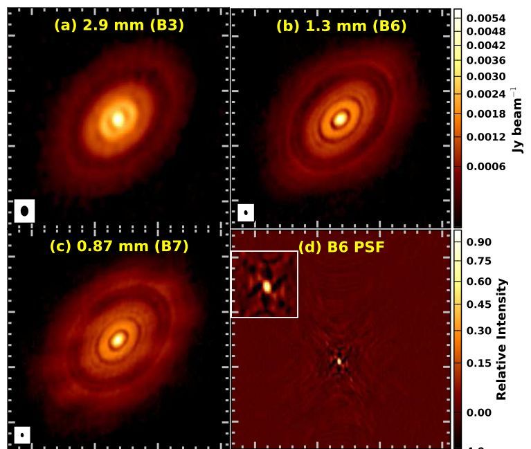 在此后的4年里,天文学家又陆续拍摄了许多其他年轻恒星周围的气体和尘埃盘的高分辨率观测图像。这些高分辨率的图像一部分来自上述的ALMA望远镜,还有一些来自欧洲南方天文台(European Southern Observatory)甚大望远镜上的SPHERE仪器。