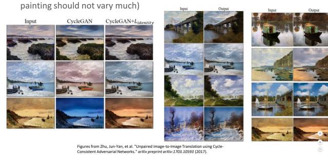 作为一种神经网络,GANs也支持 Style Transfer.它可以把一个照片变艺术画,也可以把一张艺术画变成有照片感觉的图片。另外,GANs还支持边涂鸦,边渲染。我们输入简单涂鸦,GANs帮助我们生成油画。这样看来,我们离人人都是艺术家的日子不远了。