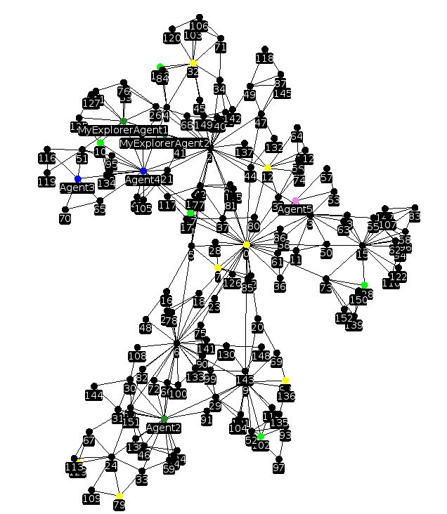智能体的感知有限,并且有不同的能力。因此,合作是必不可少的。发生冲突时,必须应用解除该情况的协议。它们必须分享自己的子图,看看谁更接近高度连接的节点,并就谁来移动达成一致。