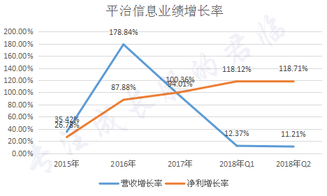 但从两张图对比可以看出,平治信息在2017年底,营收达到顶峰,从2018年开始,增速放缓,而净利润却继续翻着倍的增长。