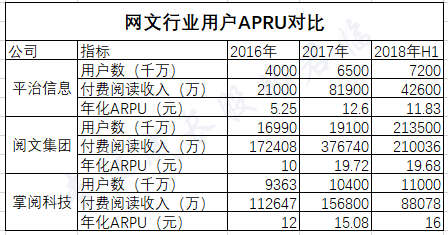 但从用户数和付费阅读收入来看,平治信息的增长速度更快,随着公司内容的不断丰富,单用户收入具备较大的提升空间。