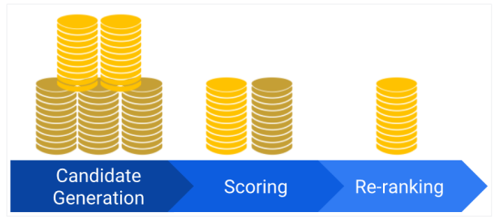 推荐系统主要由3个部分组成,候选集生成(召回),粗排,精排。