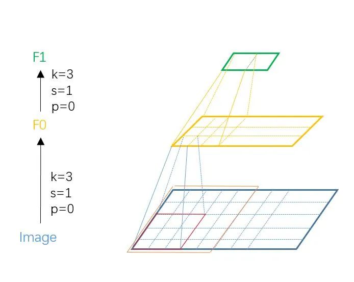 其中,L表示感受野的大小, 是第k-1层的感受野大小,而 是当前层的卷积核大小, 是第i层的步长。卷积层(F0)的感受野大小等于其内核k的大小。