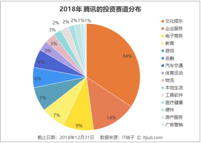 相比往年,腾讯 2018 年在文娱领域的投资数量更加多了,依照此前腾讯的战略方向「连接一切」的逻辑:公司聚焦在两个半业务,一个是社交,一个是内容,然后,通过投资的方式,把其他业务交给合作伙伴做。