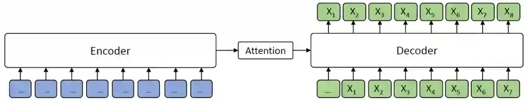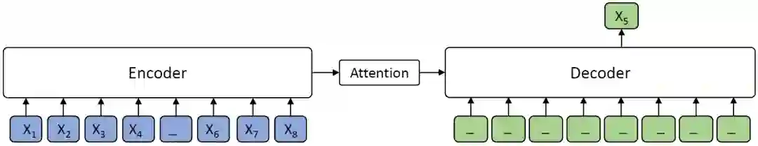 (1)解码器端其它词(在编码器端未被屏蔽掉的词)都被屏蔽掉,以鼓励解码器从编码器端提取信息来帮助连续片段的预测,这样能促进编码器-注意力-解码器结构的联合训练;