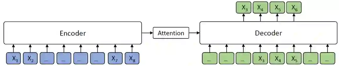 如上图所示,编码器端的第3-6个词被屏蔽掉,然后解码器端只预测这几个连续的词,而屏蔽掉其它词,图中“_”代表被屏蔽的词。