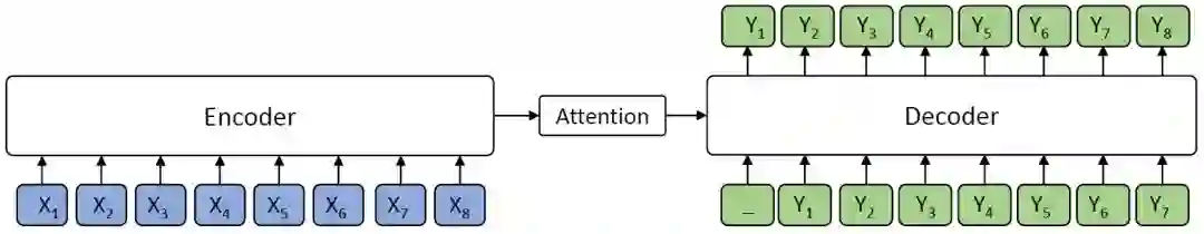 编码器(Encoder)将源序列文本X编码成隐藏向量序列,然后解码器(Decoder)通过注意力机制(Attention)抽取编码的隐藏向量序列信息,自回归地生成目标序列文本Y。
