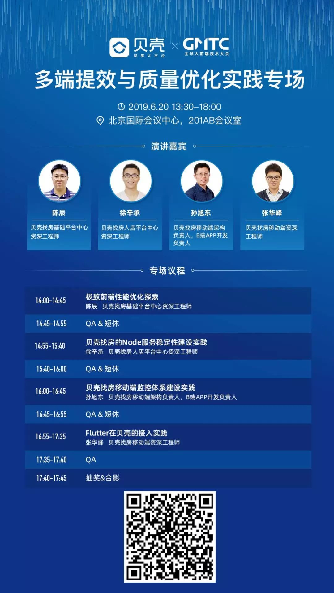 除此之外,本专场还将重点介绍贝壳找房在 To B、To C 业务的前端开发中,对 Node 服务稳定性建设的实践经验;讲述在 Native、Flutter、JS 等多场景下的质量监控预警以及快速定位问题方法;同时分享贝壳找房在 Flutter 跨平台技术的架构设计、自动化集成、多业务解耦协作提效等方面的积累探索。