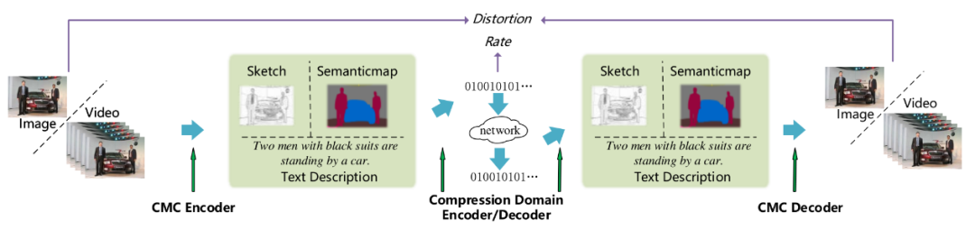 跨模态压缩将高语义冗余的数据(例如图像,视频等)压缩到一个语义紧凑的、通用的、人可理解的压缩域中(例如文本,语义图,素描图等)。它具有如下特点:(1)可以在满足一定语义保真的前提下实现超高的压缩率;(2)这种通用的紧凑表示可以用于多种分析任务,而不需要将原始数据重构出来;(3)这种紧凑的表示是人可理解的,所以可以直接用于语义监督;(4)在有必要的时候,可以结合生成模型从压缩域将原始的图像或视频重构出来。