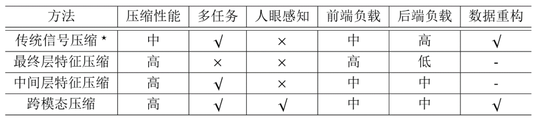 表 1:跨模态压缩与其它几种压缩框架的比较