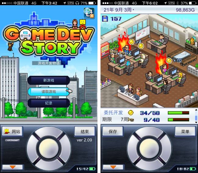 开罗系列的作品体裁经常来自于各种各样的工作,我在这里推荐这部「游戏开发物语」原名叫「游戏发展国」,是此系列中最为出名的代表作。本作的题材是模拟经营一家游戏公司,你作为公司总经理管理游戏的企划开发工作和员工雇佣与培训。游戏操作方式主要靠点击选项或者用屏幕下方的控制器选择游戏题材和分配点数来制定游戏开发企划方针。