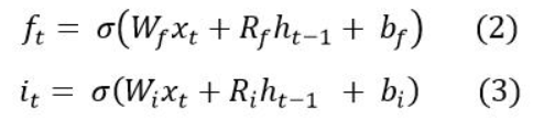 接下来计算遗忘门(forget gate)和 输入门,他们两个都是Sigmoid门: