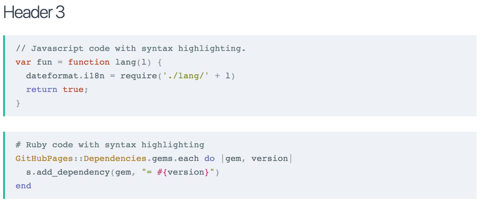 又比如语法高亮,则是要基本的 code 标签,加上一系列的 HTML 元素组成: