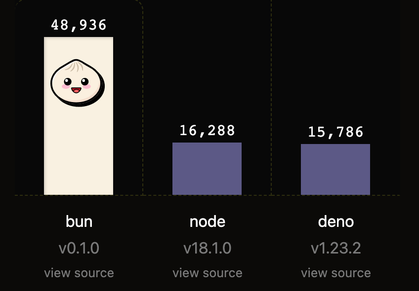 据说能提供比 Node 或 Deno 更快的 JavaScript/TypeScript 运行时