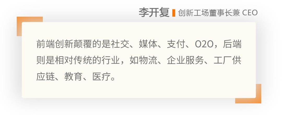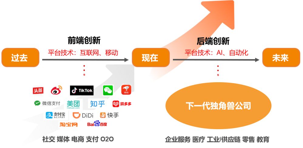 因此,我们认为,在总量增长放缓的背景下,未来10年的机会将由前端创新迈入后端升级与效率提升,分散、低效的领域和行业,都有大规模被下一代独角兽整合的机会。