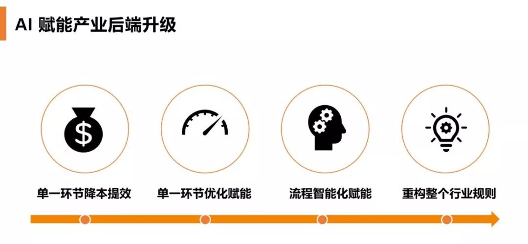 ◆AI的进阶应用是单一环节优化,在现有业务流程上嵌入AI,提高效率。