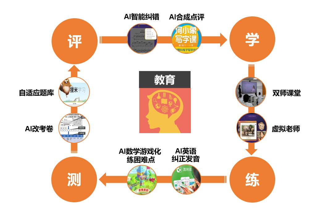 例如,教育的学、练、测、评四个环节,都可以嵌入AI应用。在创新工场投资的教育项目中,VIPKID、爱学习、豌豆思维、河小象等都已在虚拟老师、双师课堂、改考卷、智能纠错、合成点评、自适应题库等单一环节AI应用上取得突破。在这些重复性的工作上,老师可以花更少的时间,学生可以有更好的学习效率。