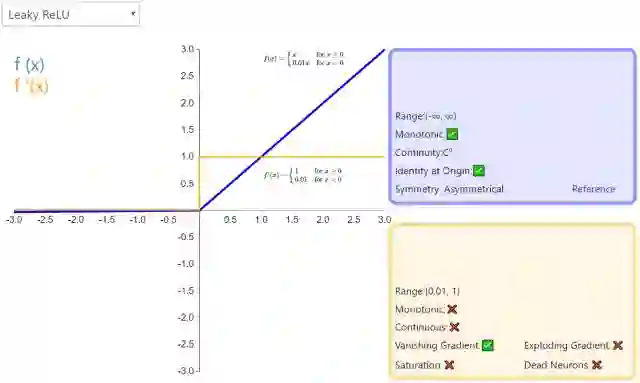 经典(以及广泛使用的)ReLU 激活函数的变体,带泄露修正线性单元(Leaky ReLU)的输出对负值输入有很小的坡度。由于导数总是不为零,这能减少静默神经元的出现,允许基于梯度的学习(虽然会很慢)。
