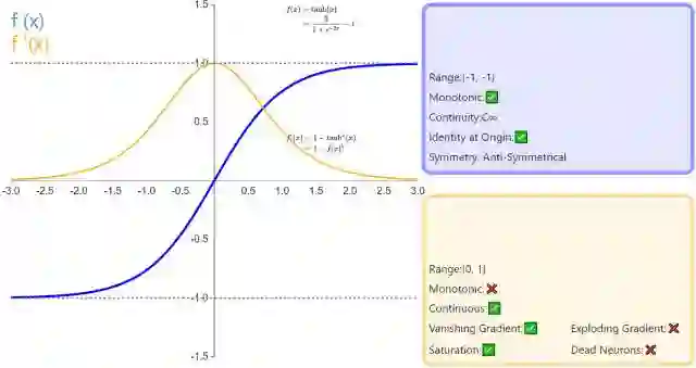 在分类任务中,双曲正切函数(Tanh)逐渐取代 Sigmoid 函数作为标准的激活函数,其具有很多神经网络所钟爱的特征。它是完全可微分的,反对称,对称中心在原点。为了解决学习缓慢和/或梯度消失问题,可以使用这个函数的更加平缓的变体(log-log、softsign、symmetrical sigmoid 等等)