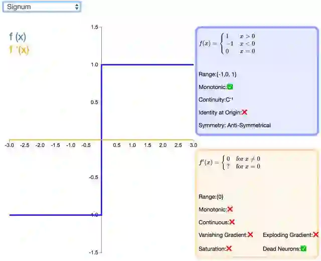 激活函数 Signum(或者简写为 Sign)是二值阶跃激活函数的扩展版本。它的值域为 [-1,1],原点值是 0。尽管缺少阶跃函数的生物动机,Signum 依然是反对称的,这对激活函数来说是一个有利的特征。