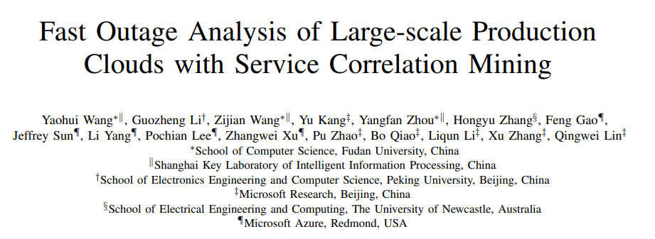 随着云计算系统的快速发展,越来越多的企业选择将它们的服务迁移到云计算平台上。因此,大规模云计算平台,如微软 Azure 云计算平台等,在支撑着数量庞大的云计算服务与终端用户的同时,保障其高可用性十分关键。