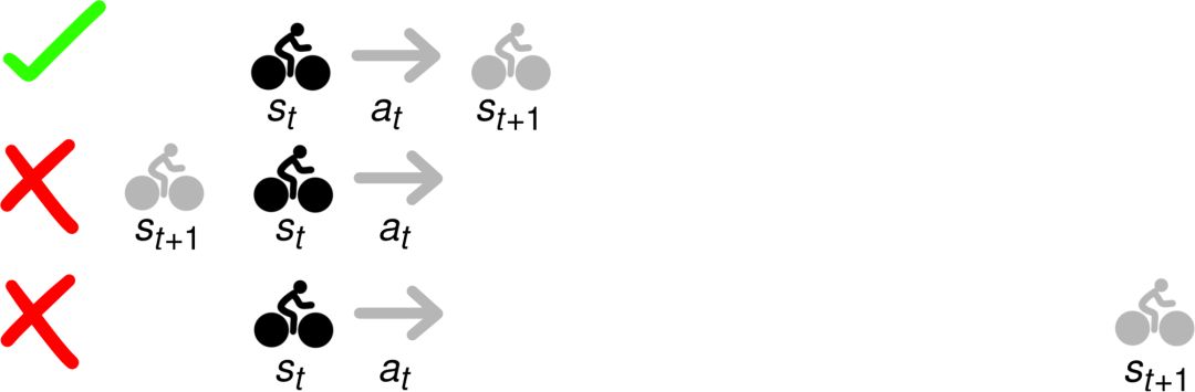 在这里,可行的意思是每一种状态下的状态转换都是有效的。例如,如下图所示,如果你从状态 开始并采取行动
