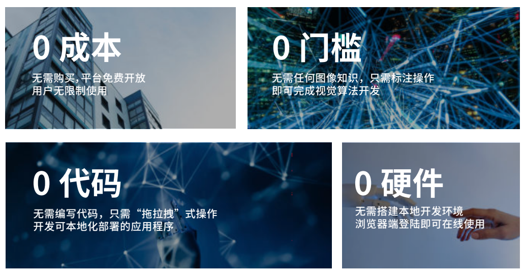 基于“0代码、0门槛、0硬件、0成本”的产品理念,用户无需具备视觉算法开发能力,即便是普通工程师也可完成机器视觉应用的开发。
