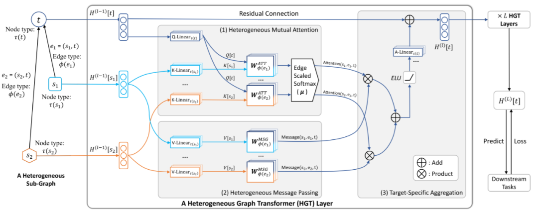 因此,HGT不需要手动设计元路径 (meta path) ,也可以自动、隐式地学习和提取对不同下游任务重要的元路径。在此分解基础上,整体的计算仿照Transformer,因此相较于传统图模型有更强的表征能力。