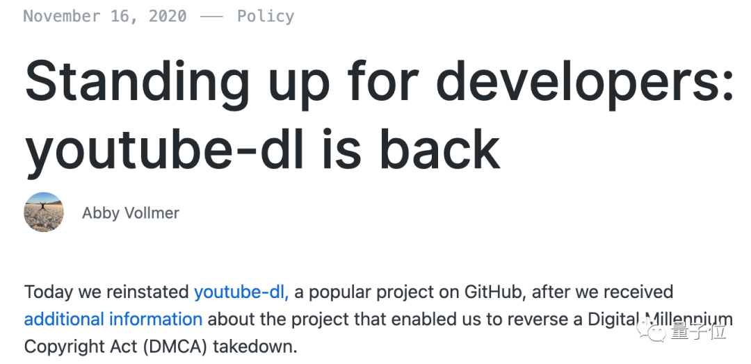 仅1天时间,也就是在11月16日,GitHub 便宣布了youtube-dl的回归。