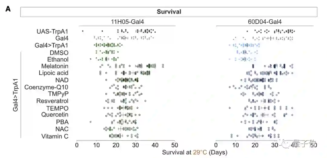 需要说明的是,这些补充剂并不能延长对照组正常果蝇的寿命。