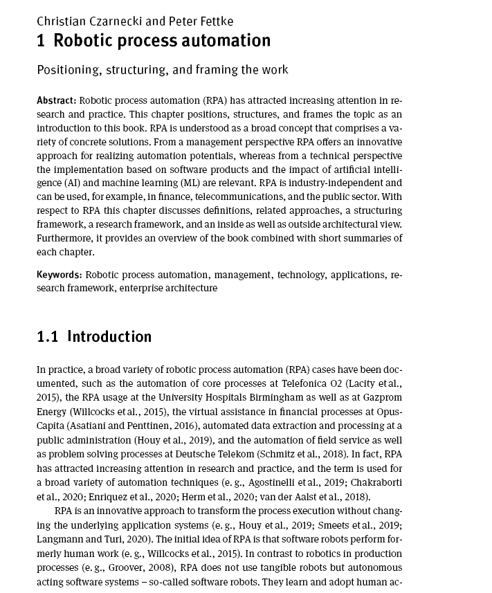 目前,人们对使用RPA改进软件支持的业务流程抱有很高的期望。通过表示层与现有应用程序交互的软件机器人可以学习和自动化手动活动。结合人工智能(AI)和创新接口(如语音识别),RPA为办公和管理流程创造了一个新的自动化水平。它的潜在收益达到投资回报率(ROI)高达800%,这在各种案例研究中都有记录。