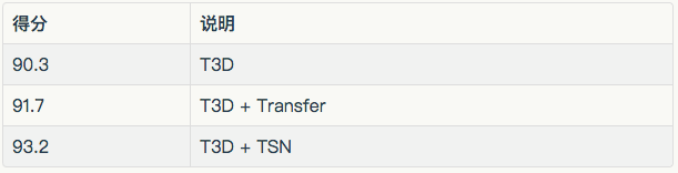 尽管最终并没有提升 I3D 的结果,但这很大程度上可能归因于相对于 I3D 来说低得多的模型记录。这个论文的最新贡献是有监督迁移学习技术。