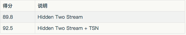 在训练期间,从视频中采样了 16 帧剪辑。这个架构用 RGB 或 16 帧剪辑的光流作为输入进行端到端训练。每个剪辑的最终预测是每个时间步长的预测平均值。视频级别的最终预测是每个剪辑的预测平均值。