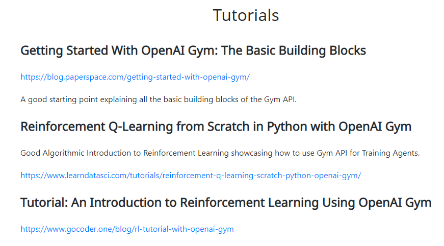 Gym发布 8 年后,迎来第一个完整的环境文档:https://www.gymlibrary.ml/