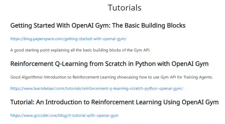 OpenAI Gym服务: 提供一个站点和api ,允许用户对自己训练的算法进行性能比较。