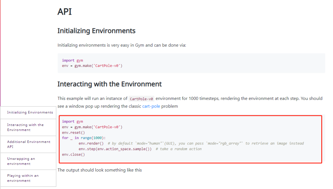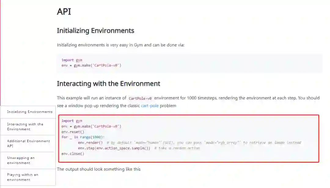 以前官方提供的gym文档主要包含两部分: