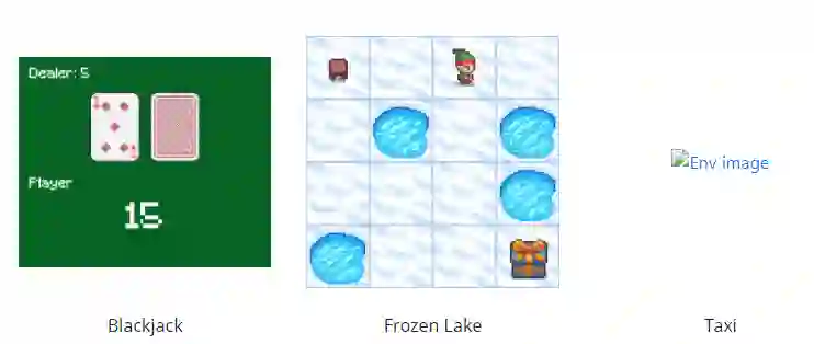 所有玩具文本环境都是由我们使用原生 Python 库(例如 StringIO)创建的。这些环境被设计得非常简单,具有小的离散状态和动作空间,因此易于学习。 因此,它们适用于调试强化学习算法的实现。所有环境都可以通过每个环境文档中指定的参数进行配置。